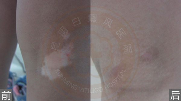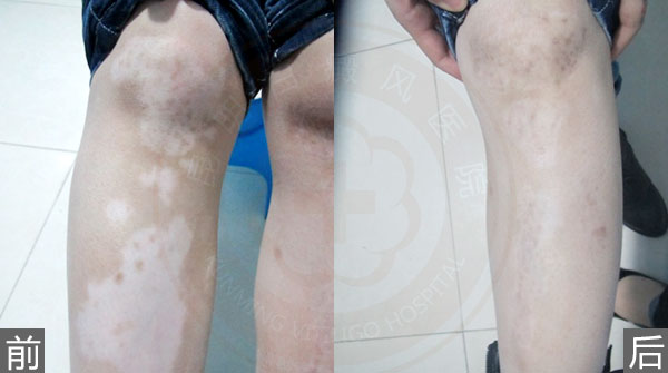 311光疗照射面积大,范围广;配合中医药物能快速激活酪氨酸酶活性,刺激黑色素细胞再生。一般坚持治疗就能见效,治疗中可以明显看到就会有黑色素岛形成。