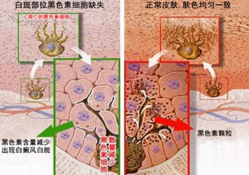 大量研究发现:白癜风患者体内正是由于缺少了黑色素才造成了白癜风的产生。黑色素的生成、转移与降解过程中发生障碍,导致皮肤颜色变白。因此,要想治好白癜风,解决黑色素合成障碍是关键。